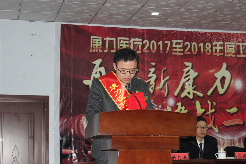 General manager lvziwen systematically made an annual work report from the company's production and operation, quality control, technology research and development, talent training, marketing development, and Neptune's docking. He comprehensively reviewed the company's achievements in 2017, summarized the main work in 2017, analyzed and judged the business situation in 2018, and formulated a work plan focusing on the strategic goal of "rebuilding xinkangli and realizing the dream of listing", clarifying the work ideas, objectives and key directions. President Lu said that with the joint efforts of everyone, Kangli medical achieved the expected annual goals in 2017 and successfully completed the main business tasks assigned by the group. The company's achievements today can not be achieved without the strong support of the two major shareholders of Luhua group and Haiwang Group, nor can they be achieved without the efforts and sweat of every Kangli person; 2018 will be the decisive year for the company's breakthrough and development. The company will fully promote the comprehensive development of its original advantageous products, OTC products, functional dressings and other product projects, and the comprehensive docking with Haiwang Group is also in efficient progress... Kangli medical has encountered a great opportunity for development. All our employees should not forget their original heart and work together to move forward towards the common goal of "rebuilding xinkangli and realizing the dream of listing"!